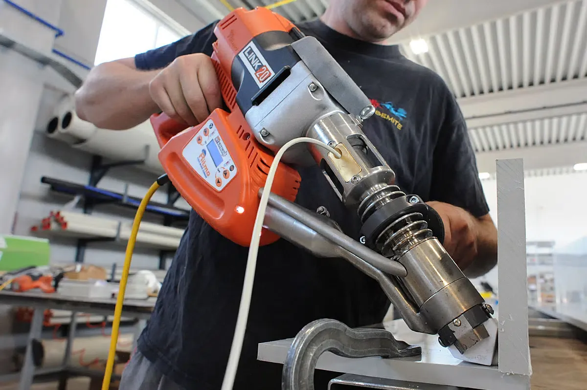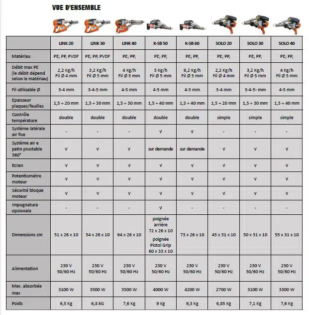 Cet appareil été particulièrement pensé pour les travaux d'extrusion plastique en espaces étroits. Pour ce type d'opérations, cette extrudeuse est parfaite car elle est la plus compacte et la plus légère de la gamme.
