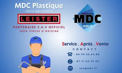 Chez MDC, nous nous efforçons d’offrir à nos clients les meilleurs services. C’est pourquoi nous sommes ravis de vous annoncer la réactivation de notre Service Après-Vente (SAV) pour les appareils de la marque LEISTER, un leader dans le domaine de la soudure plastique.